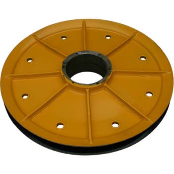 滑輪幅板采用幅板壓制成型,滑輪兩支點受力,與輪轂成三角形,加強滑輪的穩(wěn)定性,此結(jié)構(gòu)新穎,為我司獨有滑輪生產(chǎn)工藝,相同受力情況下,可減少滑輪重量,R槽為車刀成型,因此與輪轂軸的同軸度更高,R槽跳動小,性價比極高。